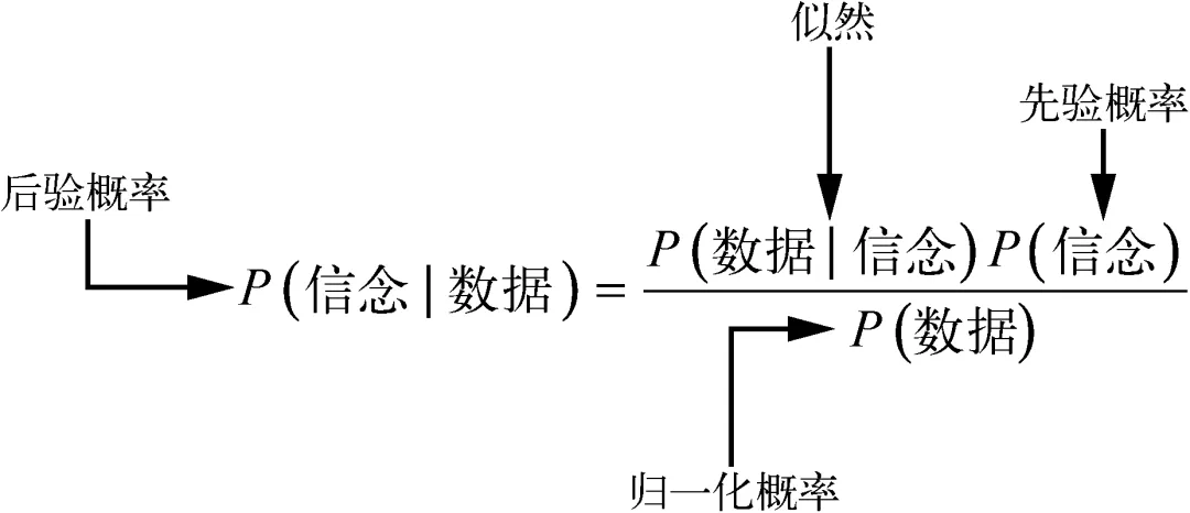 最后,需要量化初始信念的概率,即 (信念)。这一要素在贝叶斯定理中被称为先验概率(prior probability,简称为“先验”),它表示我们在看到数据之前的信念强度。似然和先验结合在一起就会形成后验。通常情况下,我们需要使用数据的概率 (数据)对后验归一化,从而使其值介于0和1之间。然而在实践中并不总是需要 (数据),所以这个值没有特殊的名字。