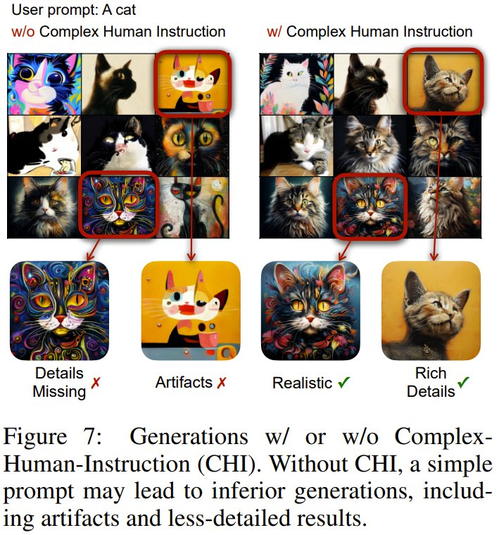 另外,他们还设计了复杂人类指令(CHI),以充分理解 LLM 那强大的指令遵从、上下文学习和推理能力,进而更好地对齐图像与文本。从下图可以看到,有无 CHI 的输出结果差异非常明显。