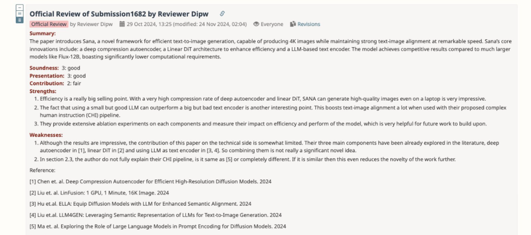 第一位审稿人和第三位审稿人的意见比较相似,他们认为 SANA 的原创性有些不足。具体来说,第一位审稿人在缺点部分写道:
