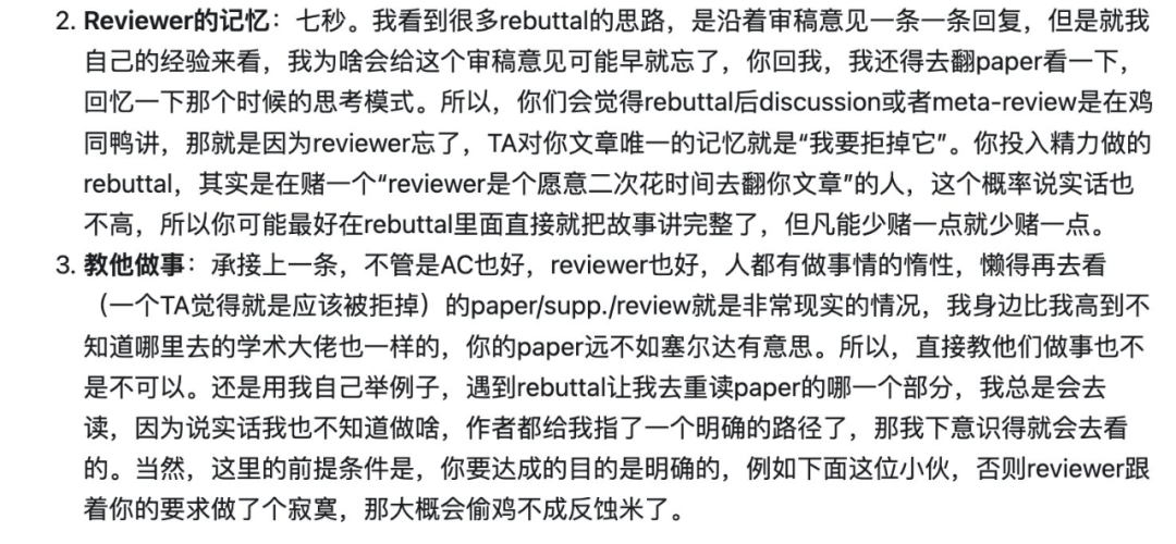 正如知名长文《审稿 CVPR 而致的伤痕文学(续):关于 Rebuttal 的形而上学》所说,从审稿人的角度来看,收到 rebuttal 时,可能早就已经忘了当时为什么会给这个审稿意见,对这篇文章的唯一记忆就是「我要拒掉它」。