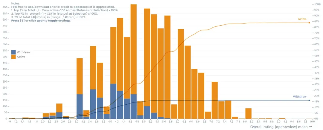 ICLR 2025 论文评分分布图,图源:https://papercopilot.com/statistics/iclr-statistics/iclr-2025-statistics/