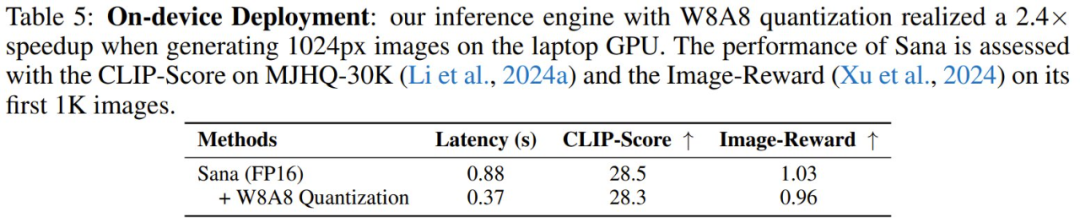 此外,他们还为 Sana 打造量化版本,并将其部署到了边缘设备上。