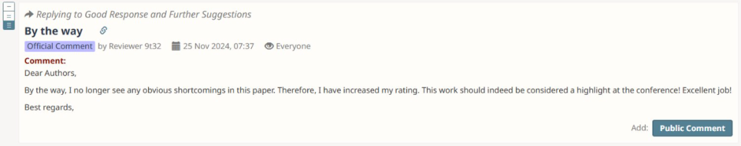 从这些审稿人与作者的互动可以看到,建设性的讨论和修正确实可以帮助改善审稿人对一篇论文的看法。