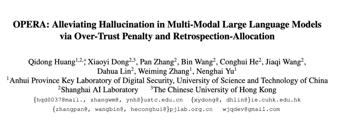 为此,研究者们提出了一种名为 OPERA 的解码方法,该方法基于注意力惩罚与回退策略,成功地在不借助外部知识并不引入额外训练的情况下缓解了多模态大模型的幻觉问题。