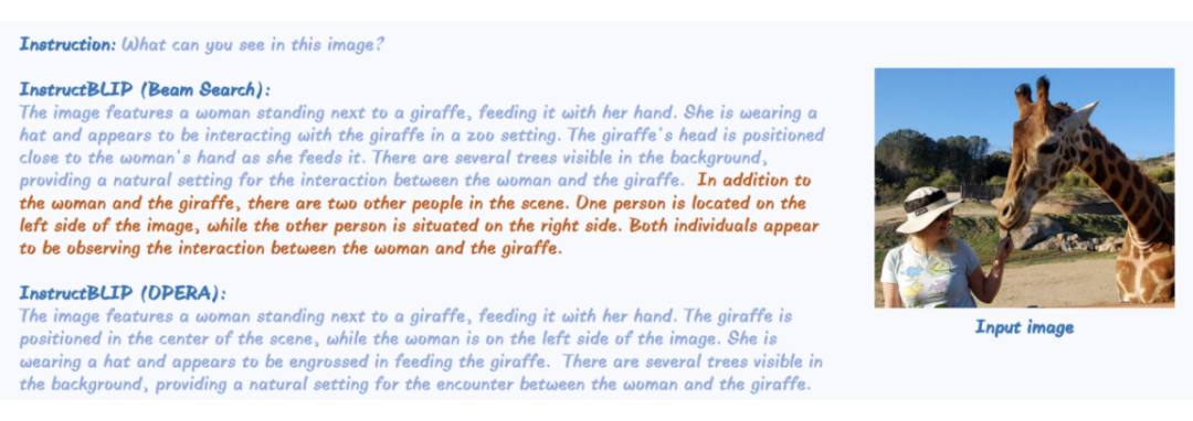 此外,研究者们还给出了 OPERA 的一些具体表现的实例: