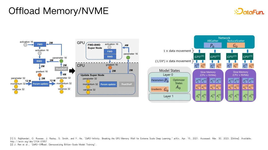 在资源有限的情况下,可以通过 off-load 技术将计算图的部分放到内存或硬盘中,以减少损耗并支持更大规模的模型训练。这一方法虽然会增加训练时间(例如,从百毫秒到数秒,增幅至少十倍以上),但对于拥有较充裕时间但硬件资源有限的研究者来说,可以尝试采用这种技术来训练模型。