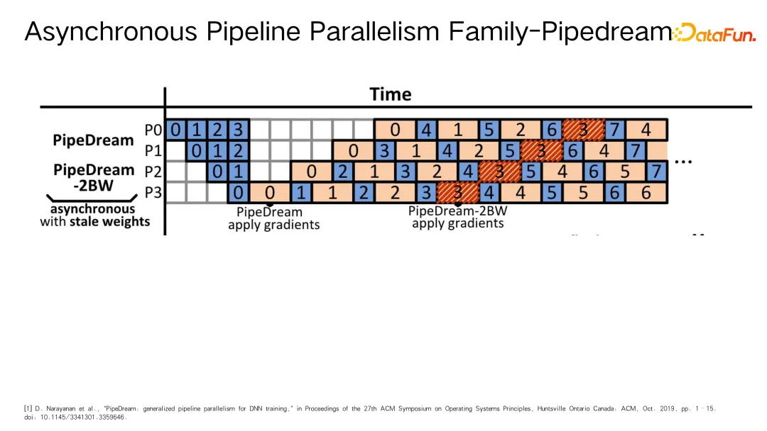 另一个关键领域是流水线并行(pipeline parallelism),这一概念近年来在分布式训练的研究中得到了广泛应用。实际上,在 CPU 操作系统的任务调度层面,流水线并行是一个经典的工作原理,而这里主要聚焦于其在分布式训练中的应用。