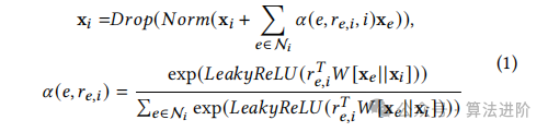 在知识聚合过程中,利用知识图中的关系表示项目和实体的邻近实体,防止过拟合时引入了dropout函数,标准化时使用_Norm_Max函数。非参数权重矩阵根据输入项和实体表示进行定制,并采用LeakyReLU激活函数。在异构知识聚合前,在知识图上实施了随机丢弃操作,以提升推荐系统性能。