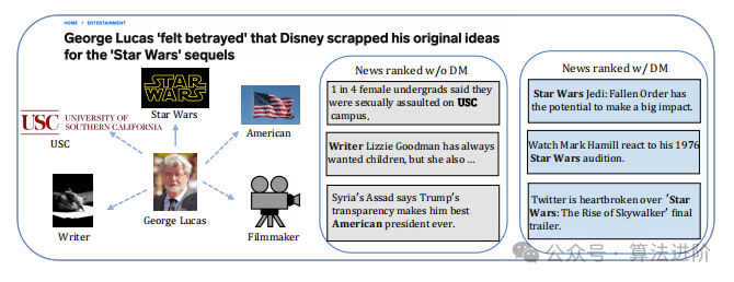 我们进行了新闻推荐案例研究,比较了使用和不使用知识图扩散模型的结果。研究发现,知识图谱中的噪声可能会引入偏差并误导用户表示。然而,通过结合KG扩散范式,我们的DiffKG有效地过滤掉了不相关的KG信息,从而产生了更相关的新闻文章。这些文章包括对星球大战视频游戏的讨论、演员参与星球大战电影以及社交媒体对星球大战电影的评论。通过准确地利用和过滤知识图谱信息,我们的模型在推荐任务中展示了改进的性能,说明了其在增强相关性和减轻知识图谱中不相关信息的影响方面的有效性。