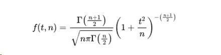 学生 t 分布(或简称 t 分布)是在样本量较小且总体标准差未知的情况下估计正态分布总体的均值时出现的连续概率分布族的任何成员。它是由英国统计学家威廉·西利·戈塞特(William Sealy Gosset)以笔名“student”开发的。