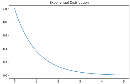 X = np.linspace(0, 5, 5000)exponetial_distribtuion = stats.expon.pdf(X, loc=0, scale=1)