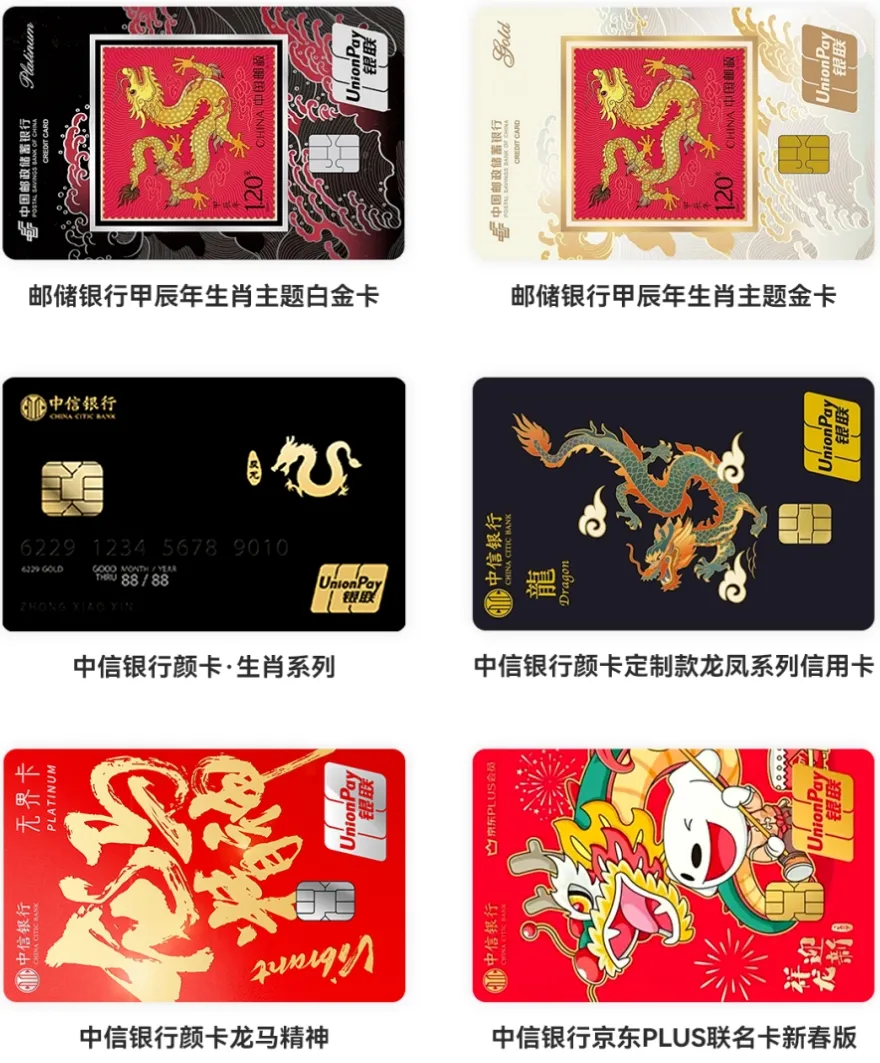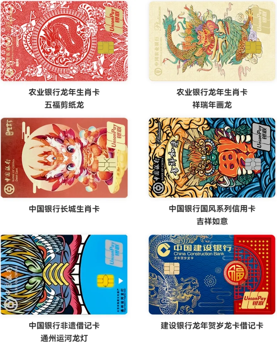 先来一波龙年主题借记卡&信用卡合集,小伙伴们可以留言自己最喜欢哪一张: