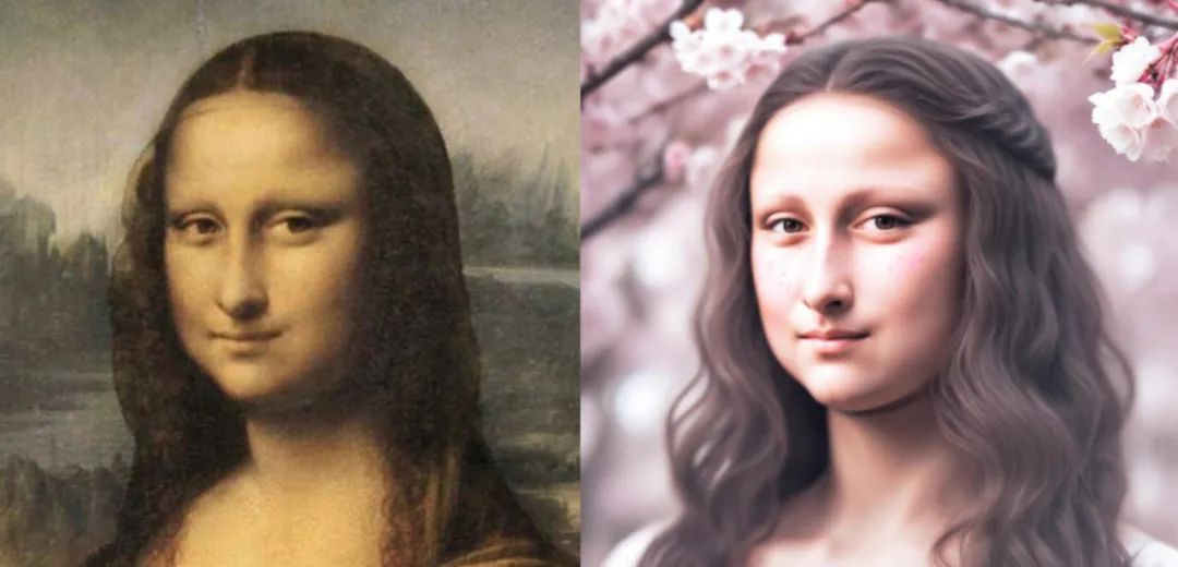 让蒙娜丽莎拍「樱花写真」,微笑依旧很神秘。
