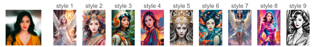 它不仅风格多样,还能在保持人物面部高保真的同时,无需模型训练,实现秒级出图,效率大幅提升。