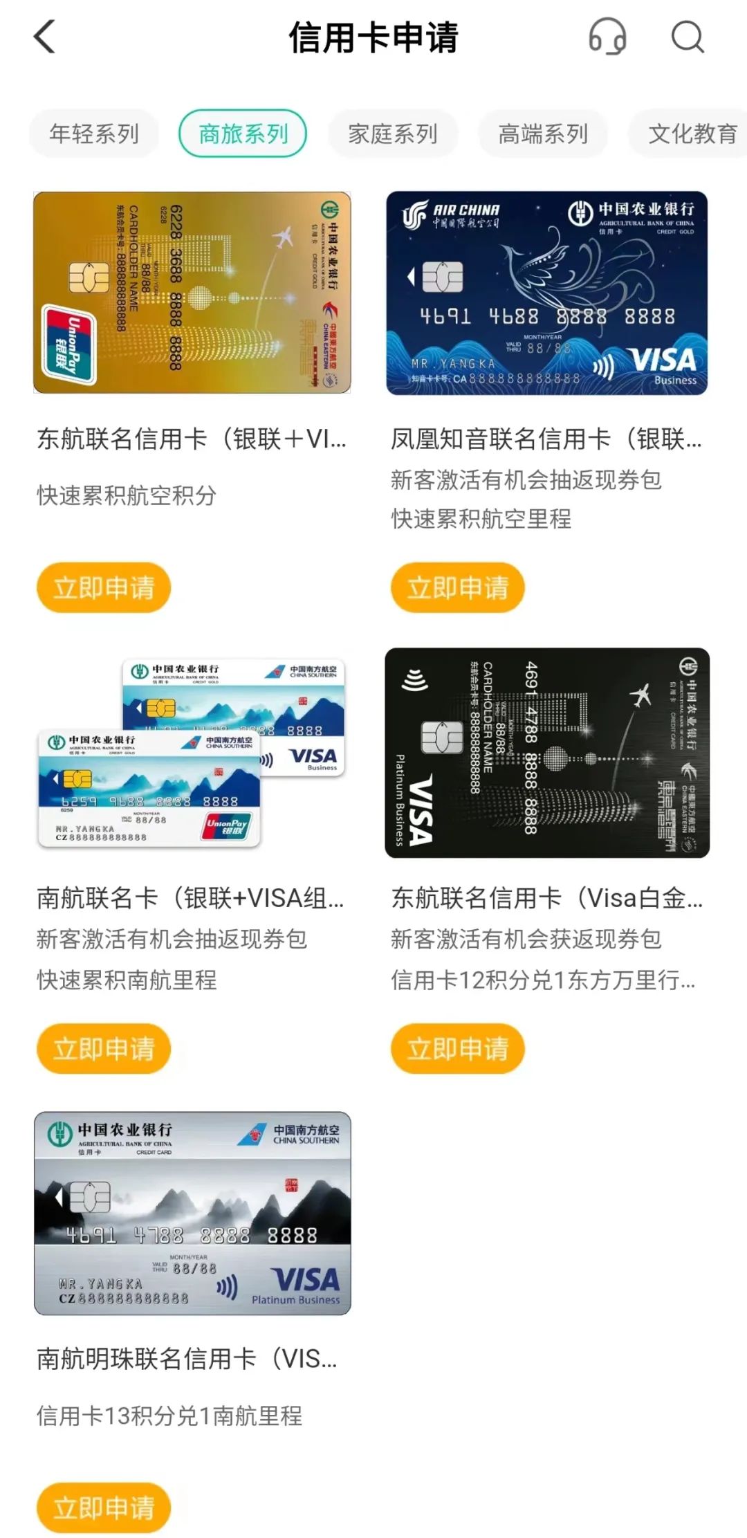 农行的航司大白,包括东航白、南航白、国航白、厦航白、吉祥白。