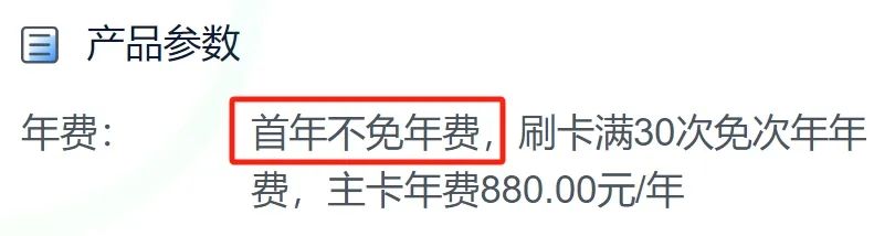 年费:880元/年。5万积分抵扣或消费满30次免次年年费。