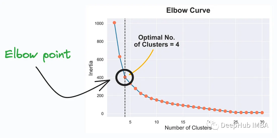Elbow Curve是一种常用的工具,用于帮助选择K-Means聚类中的最佳簇数,肘部的点表示理想的簇数。这样可以更好地捕获数据的内在结构和模式。