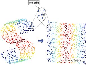 上面提到的MDS只是对数据降维,它需要已知高维空间中的距离关系,它并不能反应出高维数据本身潜在的流形,但是可以结合流形学习的基本思想和MDS来进行降维[5]。也就是高维空间的局部空间的距离可以用欧式距离算出,针对MDS的距离矩阵A,某两个相邻的点之间距离