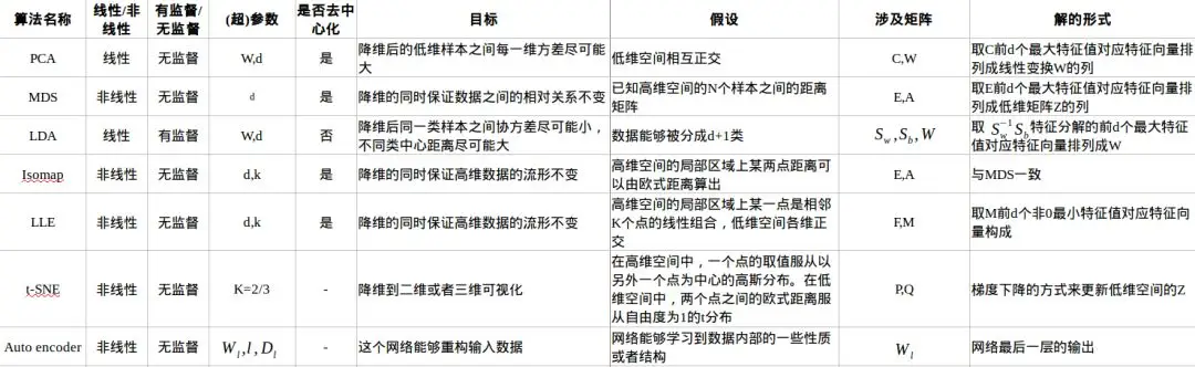 本文给出了七种算法的一个信息表,归纳了关于每个算法的参数、算法主要目的等,并介绍了降维的一些基本概念。