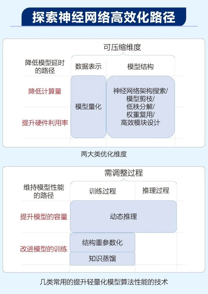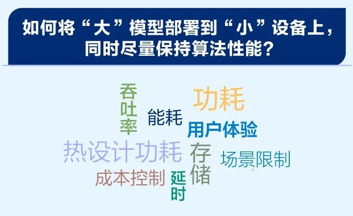 如何将“大”模型(参数量大、计算量大)部署到“小”设备上(资源受限,计算和存储能 力低),同时尽量保持算法性能是各应用领域都非常关心的话题。