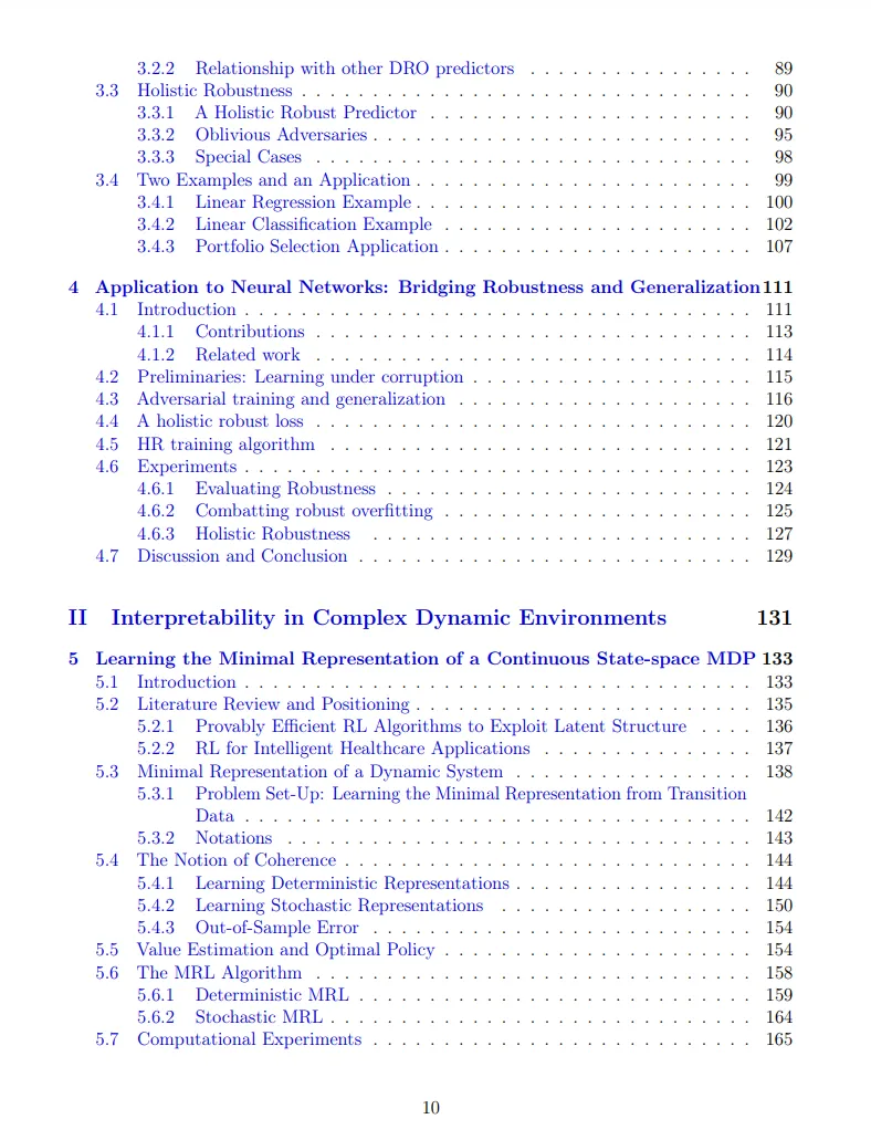 本文探讨了提高机器学习算法可靠性的两大关键维度:鲁棒性和可解释性。首先,论文讨论了鲁棒性的重要性,研究了在不同数据不确定性影响下的学习鲁棒性,包括统计误差、数据噪声与损坏等。通过引入分布鲁棒优化方法,提出可以同时应对多种不确定性来源的分布模糊集,从而实现高效的鲁棒性。这种新算法在各种实际应用中展现了优于现有基准的性能。其次,论文探讨了可解释性,特别是在个性化患者治疗方案中的应用,指出医生不能依赖黑箱算法进行治疗方案决策。通过理论研究,证明了从观察到的历史样本中可以学习出动态系统的简洁表示,进而开发出增强可解释性的算法MRL。该研究为高风险环境中的决策支持工具提供了更加可靠与可理解的框架。