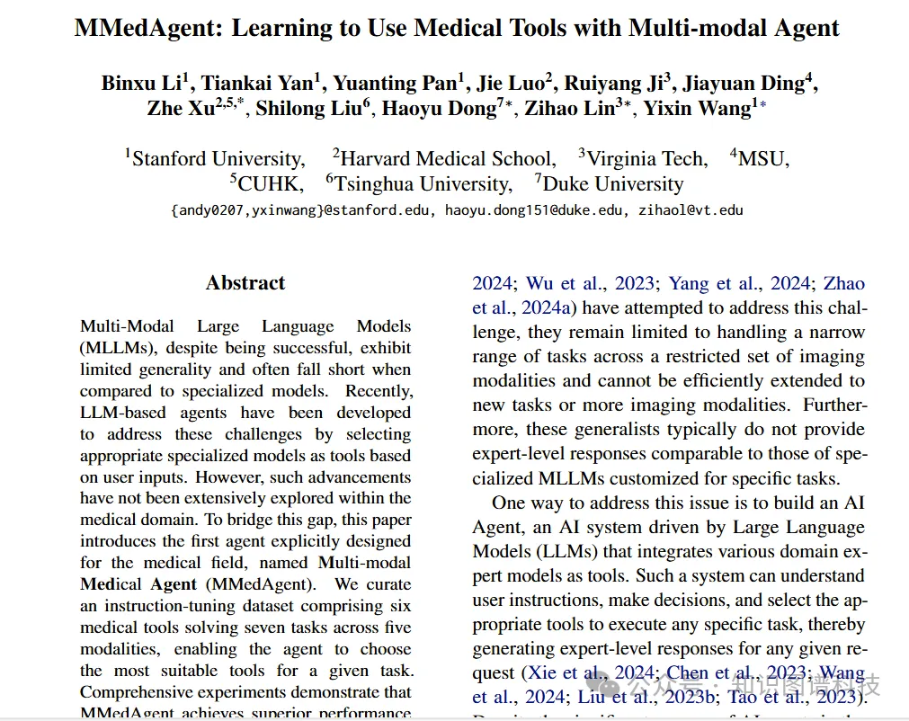 原文标题:斯坦福&哈佛医学院 - MMedAgent,一个用于医疗领域的多模态医疗AI智能体