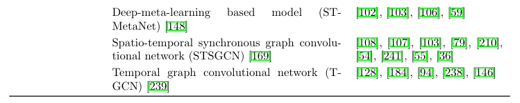 选定论文中提到的数据集与具体的案例研究密切相关。尽管在“通用”组中列出了一些基准数据集,但整个GNN研究社区并没有共同的标准数据集。希望研究社区能够就一些最常用的数据集达成一致,并开始采用它们,例如交通数据集,目标是为整个研究社区开发共享的基准数据集。希望这篇综述能够通过提供不同数据集上模型结果的全面表格来促进这一点,以便于比较不同的时空GNN模型。