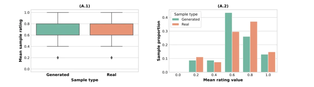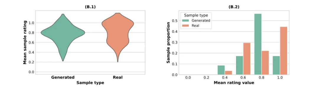 将样本接球者的预测评分进行平均后,研究人员发现,预测接球者在对实际样本和生成样本的平均评分上,并不存在统计学上的显著差异 (z = 0.97, p > 0.05)。