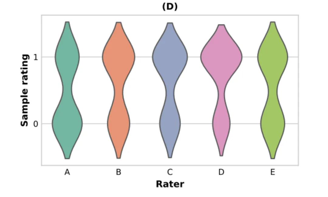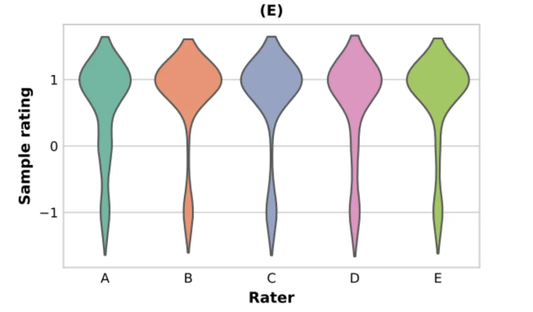 最终发现,不同评估人员的评分分布之间没有显著差异,这表明他们对 TacticAI 检索类似角球能力的有效性存在高度一致意见 (F1,4 = 1.01, p > 0.1)。