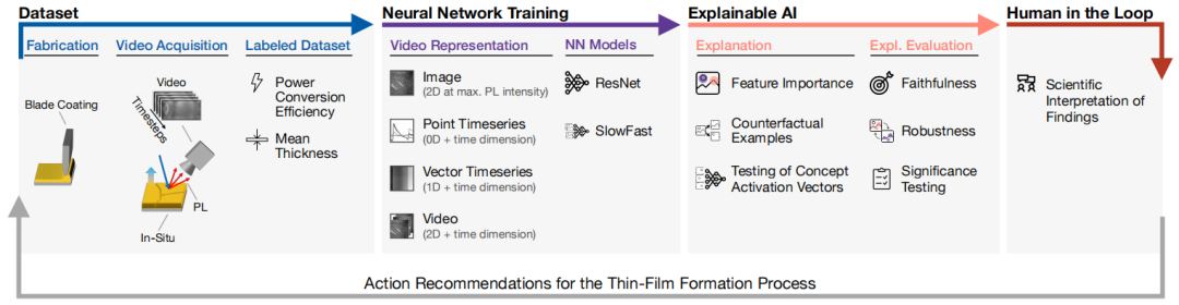 德国癌症研究中心(German Cancer Research Center)交互式机器学习小组(Interactive Machine Learning Group)、亥姆霍兹成像小组(Helmholtz Imaging)以及德国卡尔斯鲁厄理工学院照明技术研究所(Light Technology Institute, Karlsruhe Institute of Technology)的研究人员组成跨学科研究团队,利用深度学习和可解释的人工智能(XAI)来发现钙钛矿薄膜形成过程中获取的传感器信息与由此产生的太阳能电池性能指标之间的关系,同时使这些关系变得易于理解。