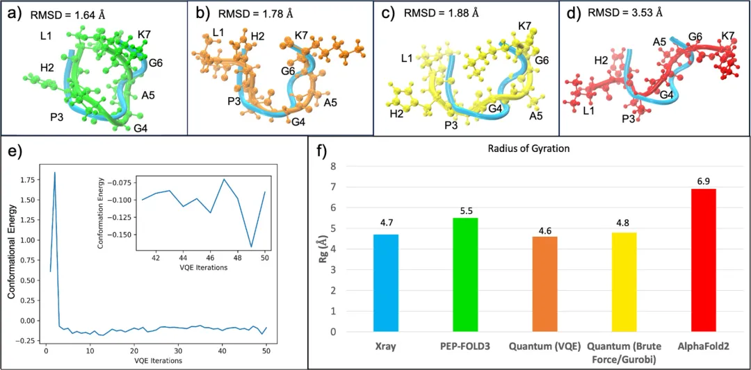 量子-经典混合框架的初步结果优于基于经典物理的方法和 AlphaFold2。尽管后者的设计最适合处理较大的蛋白质,但它仍然证明了该框架能够在不直接依赖大量训练数据的情况下创建精确模型的能力。