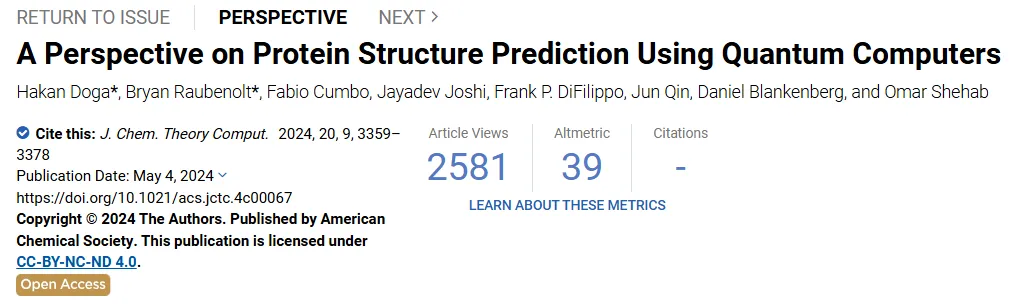 该研究以「A Perspective on Protein Structure Prediction Using Quantum Computers」为题,于 2024 年 5 月 30 日发布在《Journal of Chemical Theory and Computation》。