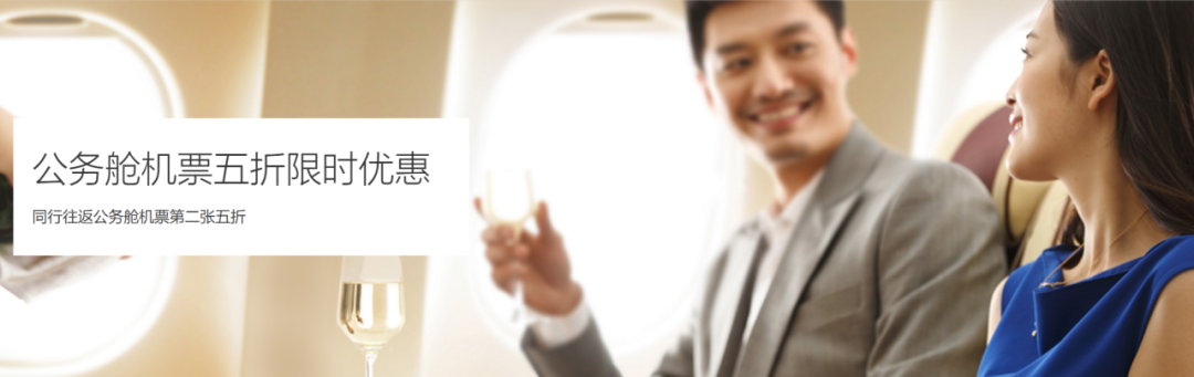 ● 第二张公务舱机票5折,1次/年