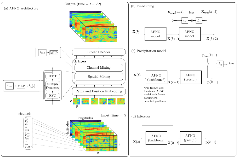 2022 年,NVIDIA 发布了 FourCastNet,基于傅立叶预测神经网络,首次进行了分辨率为 0.25° 的深度学习天气预报。