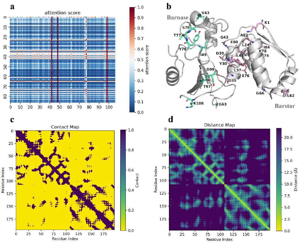 此外,AlphaPPImd 的注意力机制捕获了关键残基之间的注意力权重,并提供了关于蛋白质-蛋白质结合的机制见解。