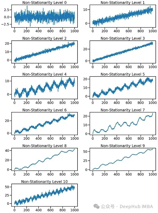每个级别通过逐步增加可变性和改变统计特性来增加非平稳性。