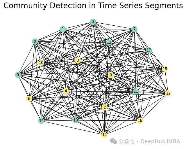 高连通性(密集社区) :如果图显示节点(片段)之间的高连通性,很少或没有孤立的簇,这表明时间序列是平稳的。密集的社区或"充分混合"的结构意味着时间序列的统计特性(如均值和方差)随时间保持一致,这意味着整个过程中片段之间的相似性很高。