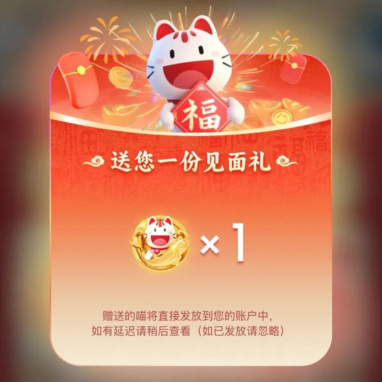 专属任务集喵:完成专属任务,可获得对应数量,限完成 1 次