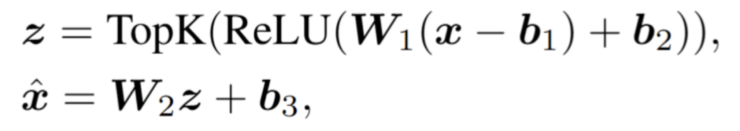 SAE 是一个可以追溯到 1996 年的经典解释性的方法 [1] ,其本质是对特征找到一组互相关性很小的基,把特征分解为这组基的一个稀疏表示。因为基的互相关性很小,所以这些基很可能是单语义的。这篇文章使用了 OpenAI 的两层 SAE 实现: