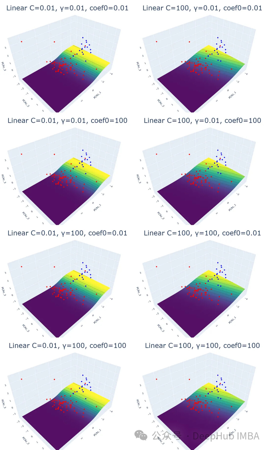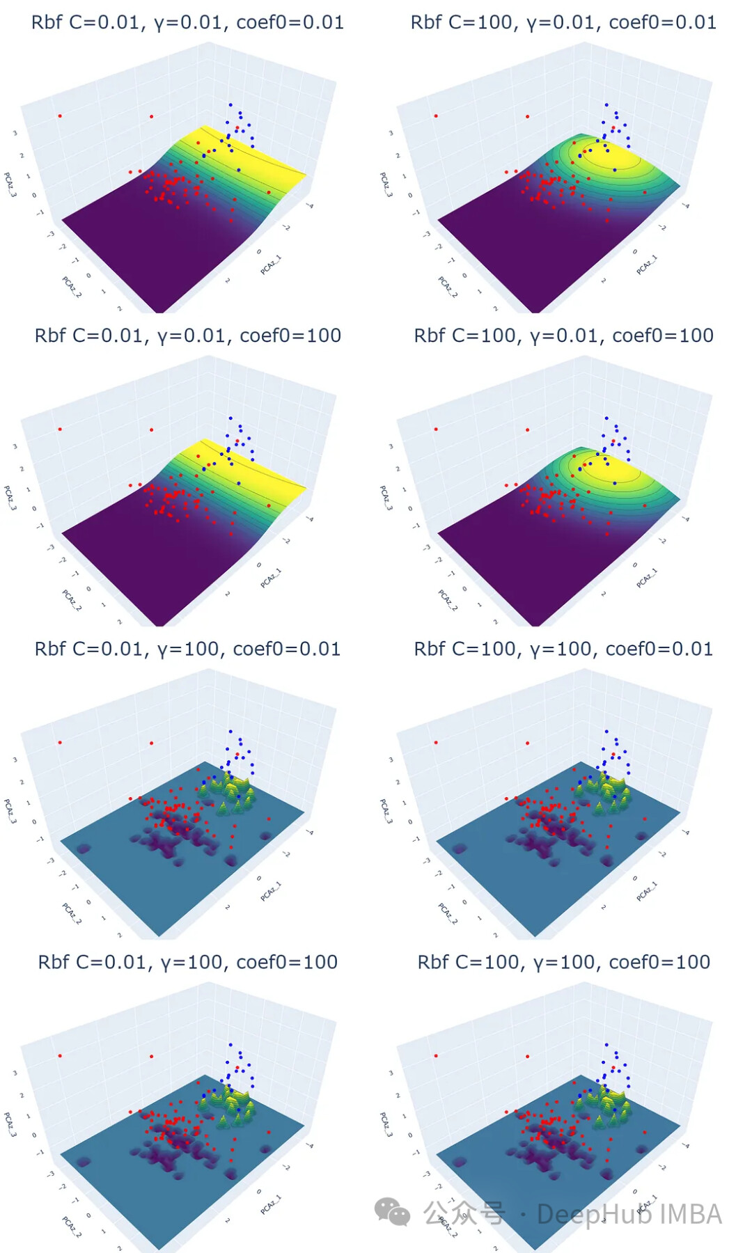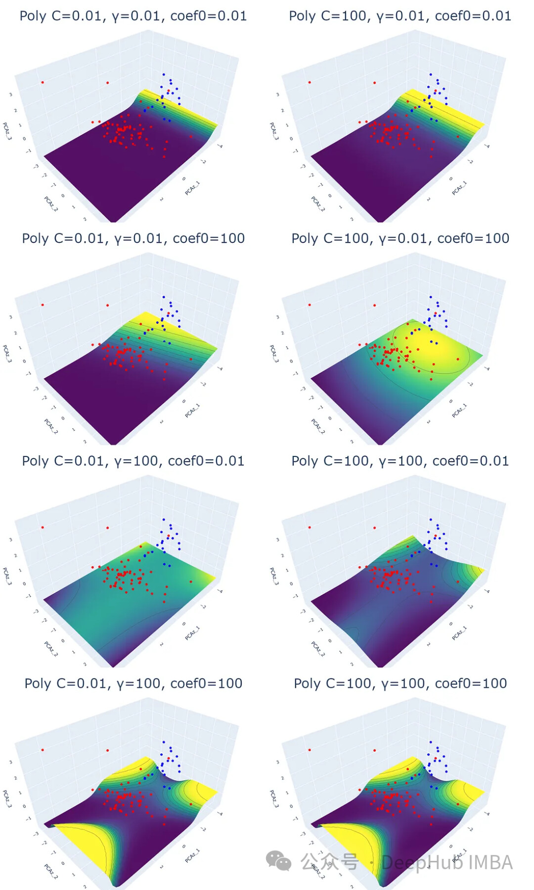 本文将用数据可视化的方法解释4种支持向量机核函数和参数的区别。