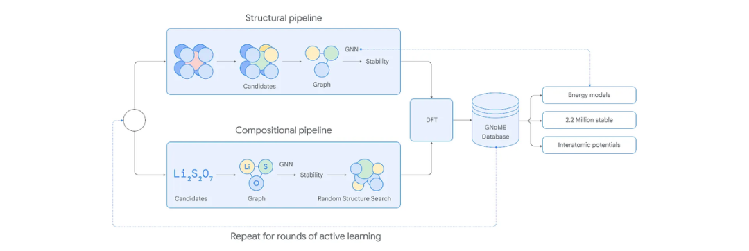 4. 将评估结果添加到 GNoME 数据库中,为下一轮主动学习提供信息。