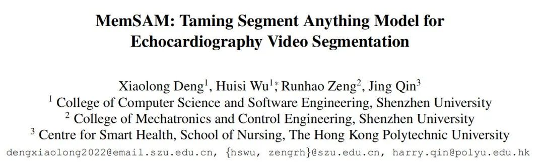深圳大学计算机与软件学院和香港理工大学智能健康研究中心联合提出了一种新颖的超声心动图视频分割模型 MemSAM,与现有模型相比展示了最先进的性能。