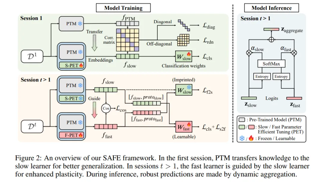 SAFE框架利用慢速与快速参数高效调优策略,提升预训练模型在持续学习中的性能,有效避免灾难性遗忘。