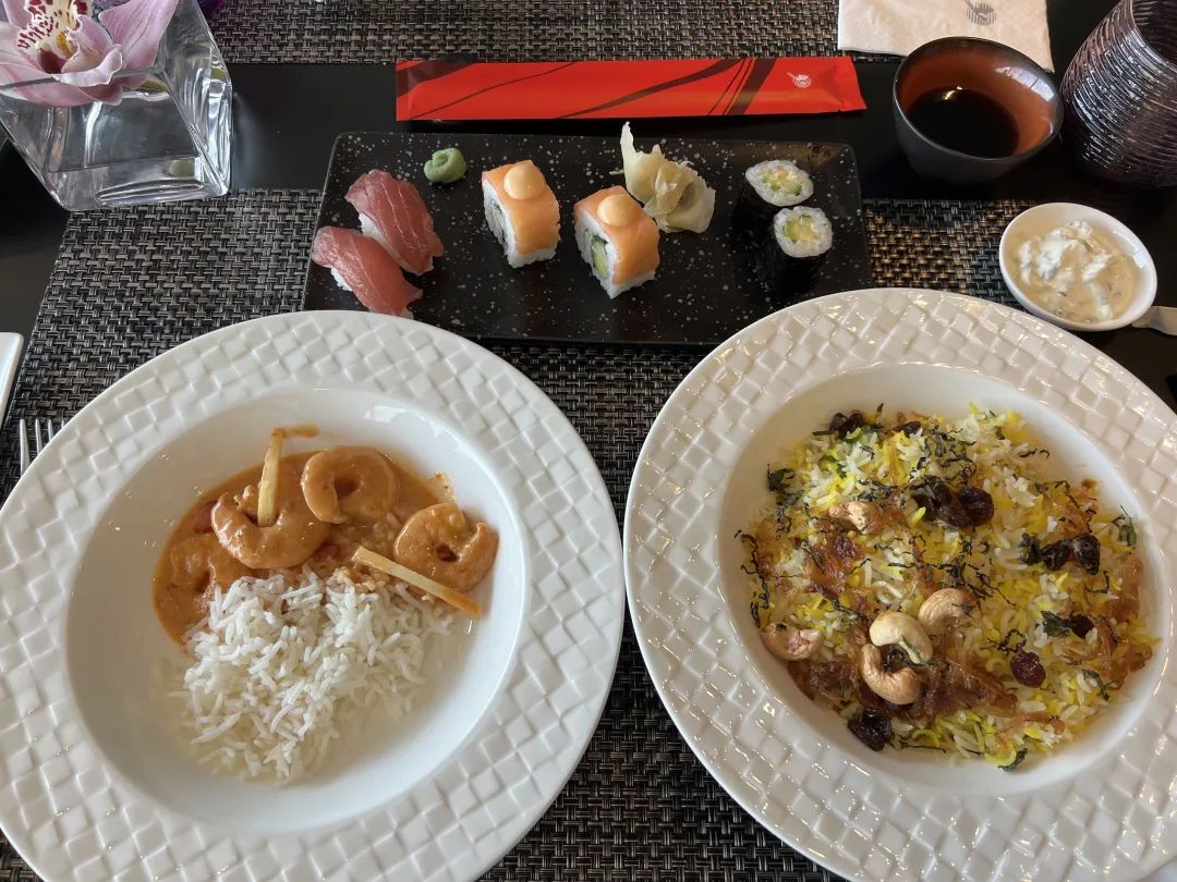 自助的泰式咖喱以及单点的寿司和羊肉饭