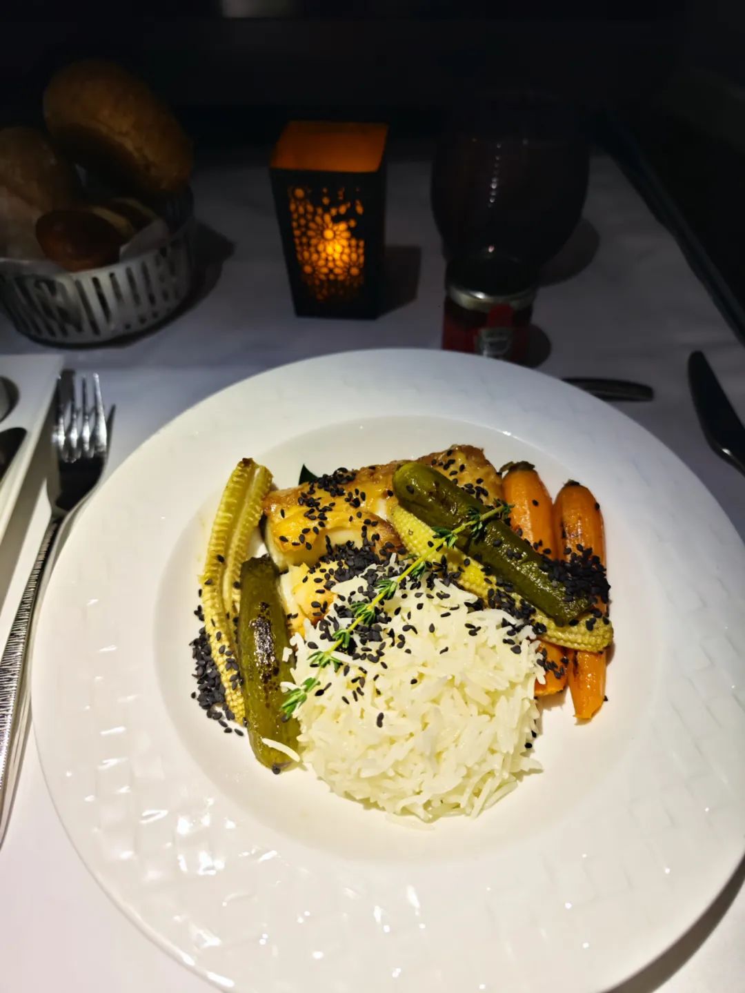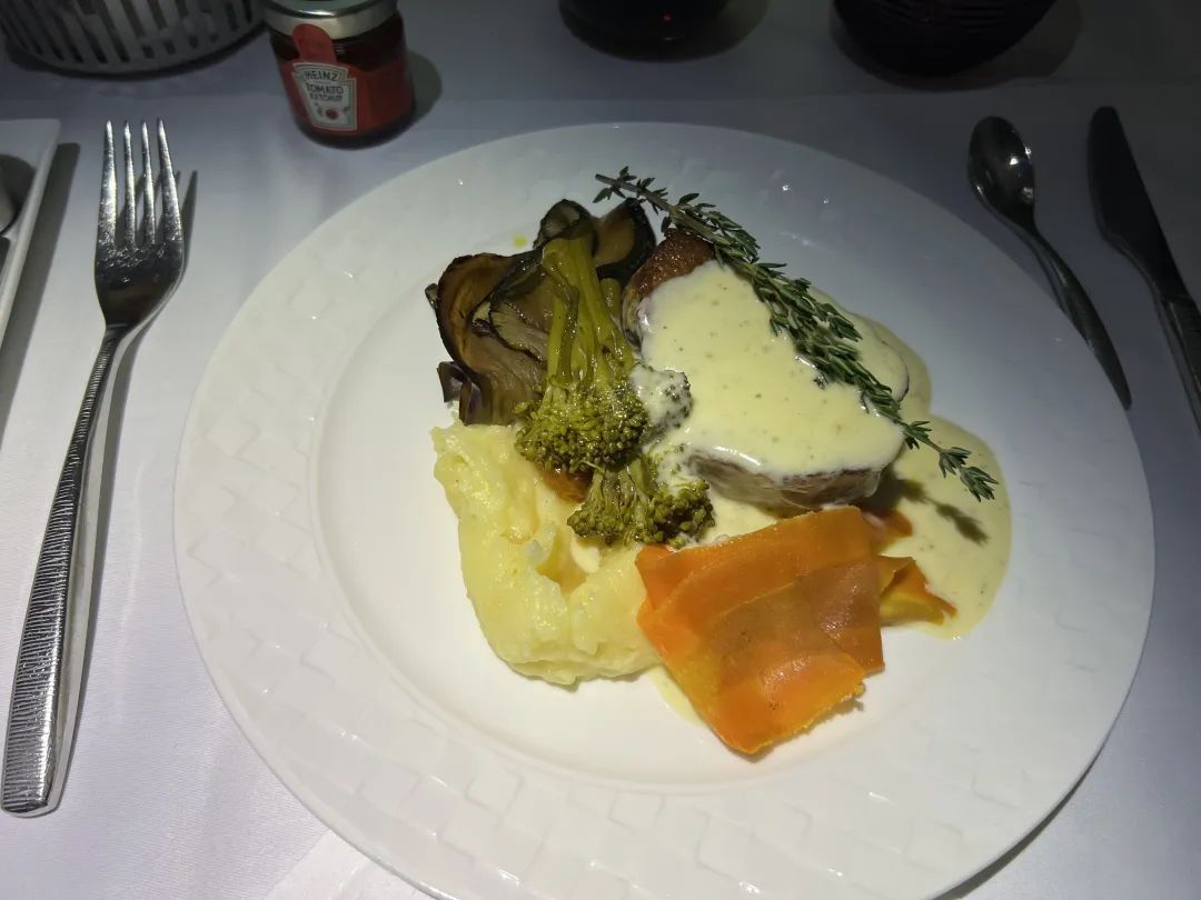 鄙人很喜欢吃中东餐,在伦敦吃了一顿科威特菜,也挺不错的。机上配餐味道也不错,主菜牛里脊、鸡胸肉或烤鳕鱼,味道在线。