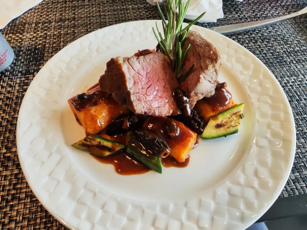 主餐有厚牛里脊或者鸡胸肉可以选