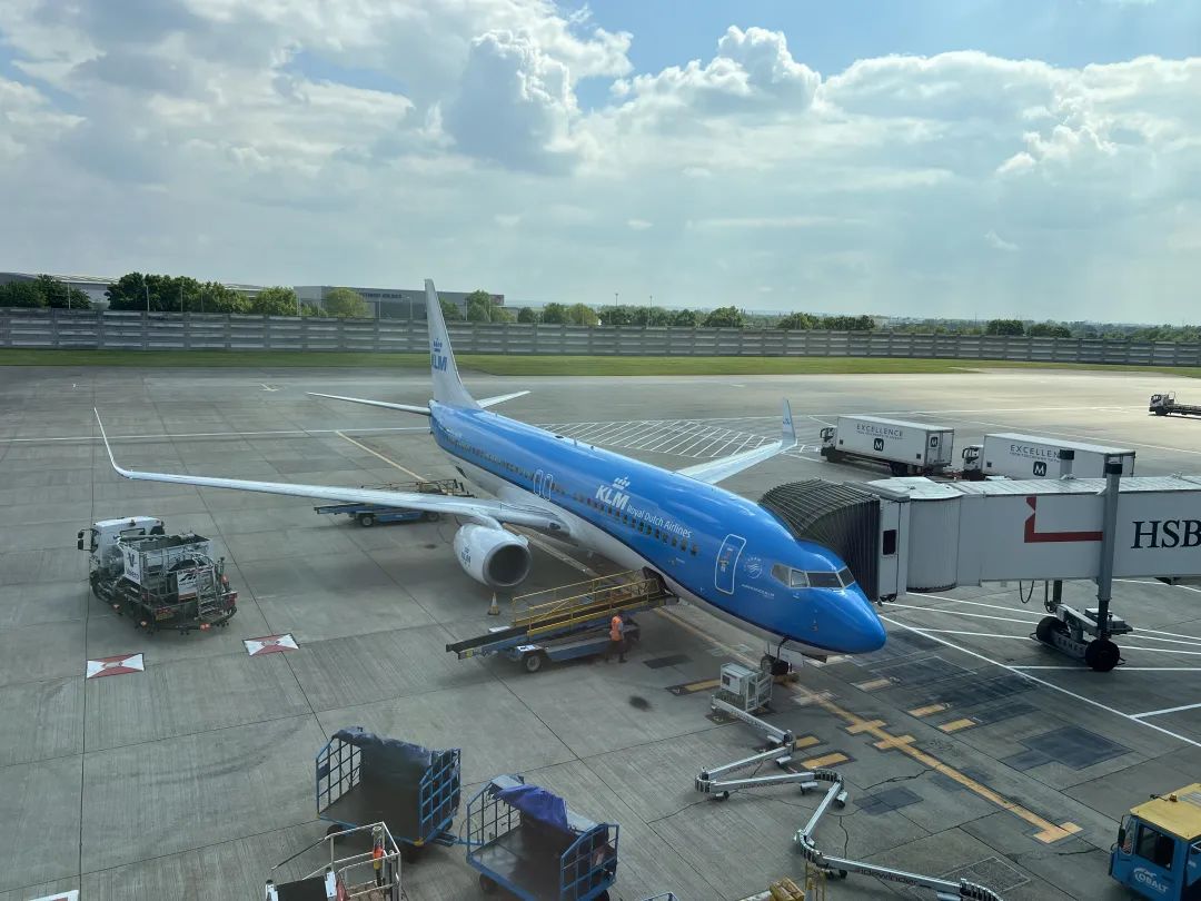 休息室窗外是机场一角,正好停了一架KLM