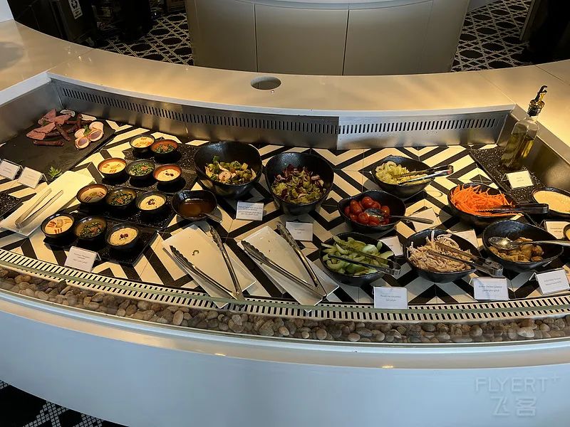 在希思罗机场,卡航为两舱和高卡旅客提供单独的值机区域和专属休息室。休息室提供自助简餐和点餐服务,包括寿司、牛排等,矿泉水为依云。