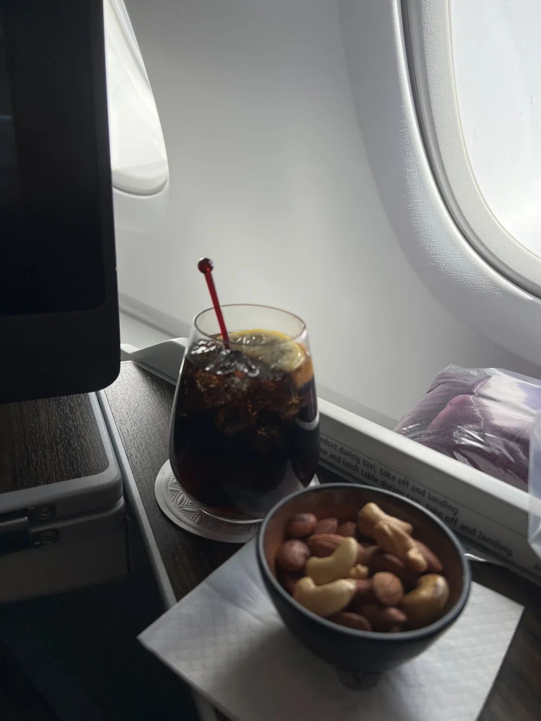 难得坐一次A380,大飞机坐一次少一次吧。看得出卡航这个航班的收益蛮高,二层前部头等中间商务后面还有超经,基本都坐满了。