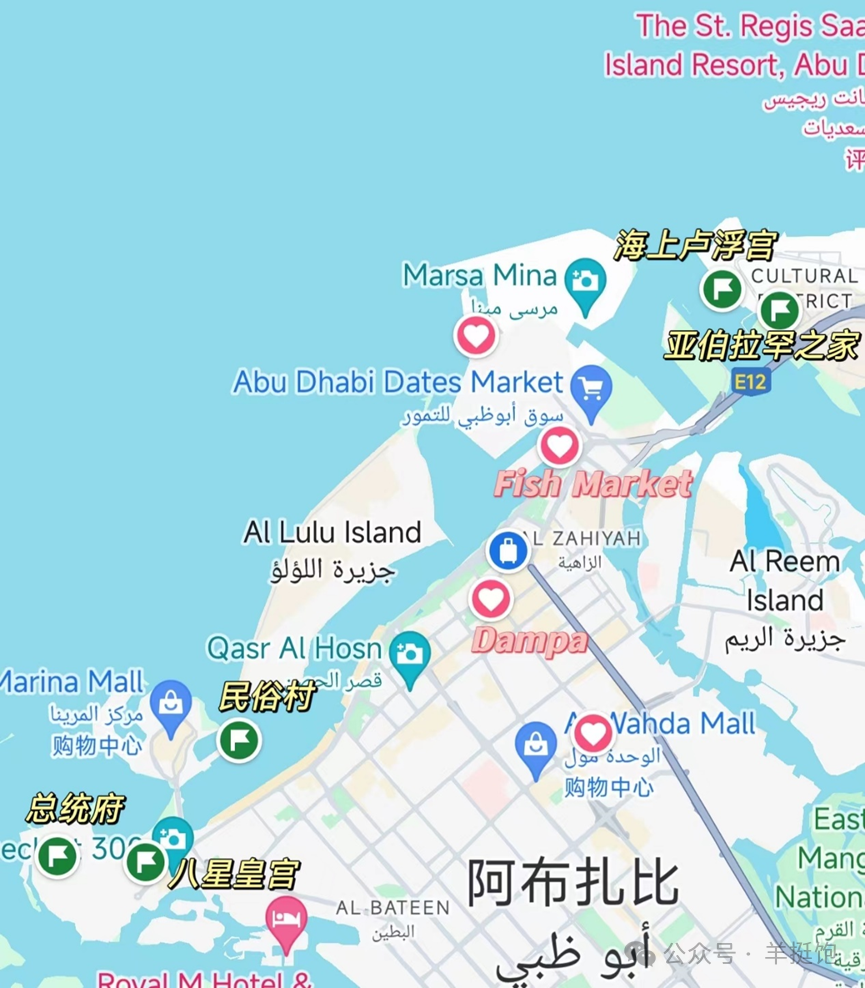 作者详细介绍了阿布扎比的景点,主要分为总统府、八星皇宫酒店和民俗村所在的A区;海上卢浮宫和亚伯拉罕之家所在的B区;亚斯岛四大主题公园所在的C区;以及谢赫扎耶德大清真寺所在的D区。